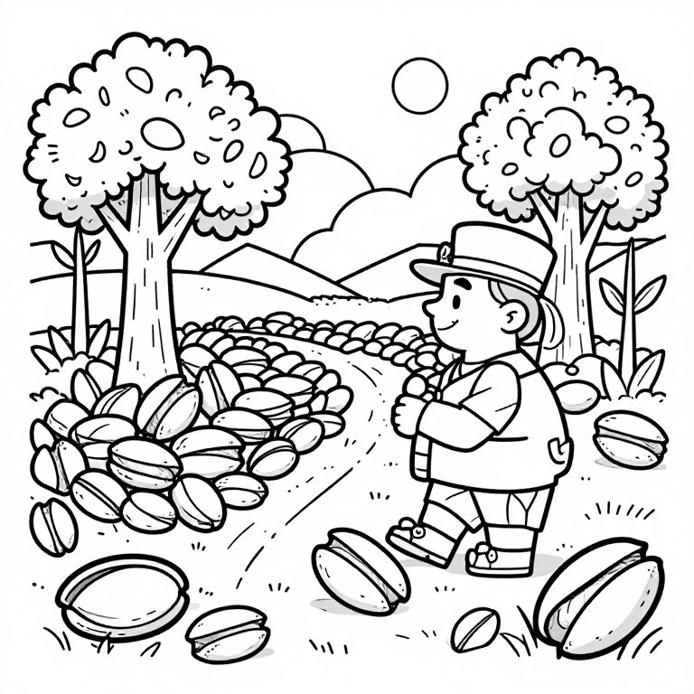 Pistachio garden of Eden, Bible story cartoon, colouring book style, black and white lines, vectors, v5,