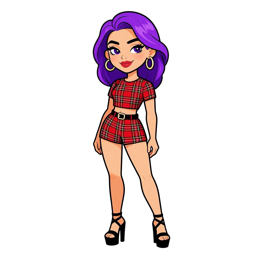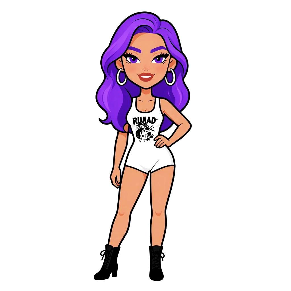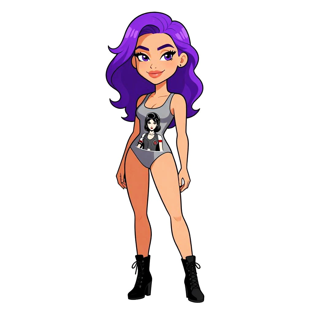 Woman with pretty face and pretty hair. smiling Woman, casual urban, white tank top bodysuit with black graphic print, scoop neckline, sleeveless, fitted silhouette, black lace-up ankle boots, white background --sref 1467