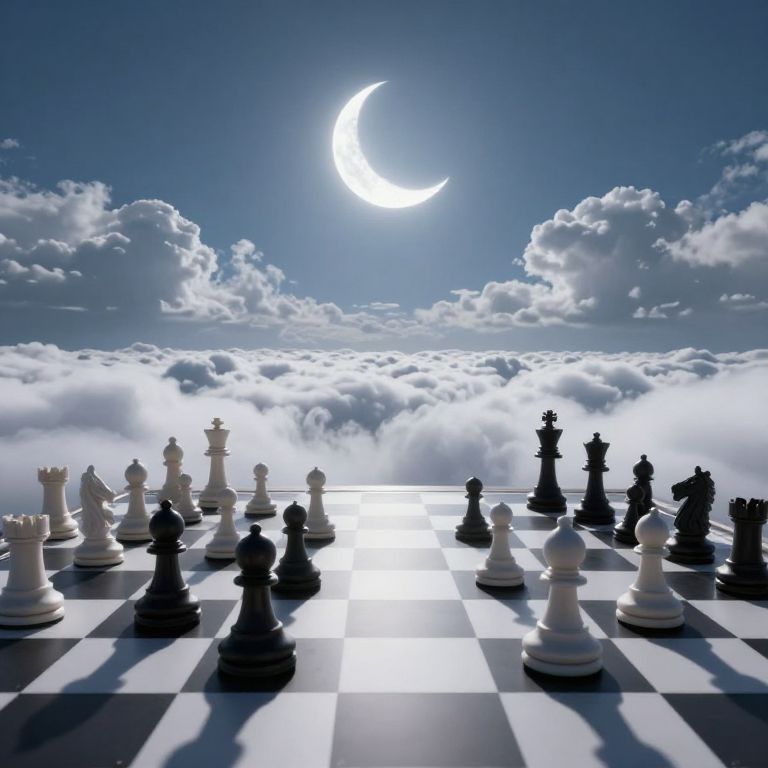 Surreal Chessboard Under Crescent Moon