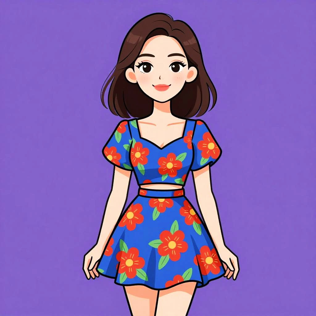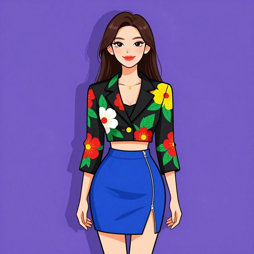 Chic Woman in Floral Midi Skirt