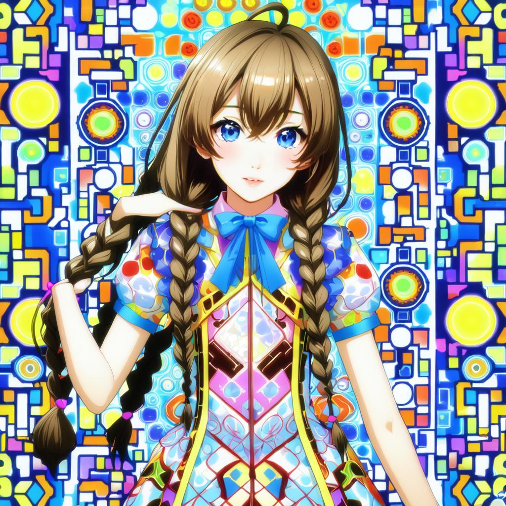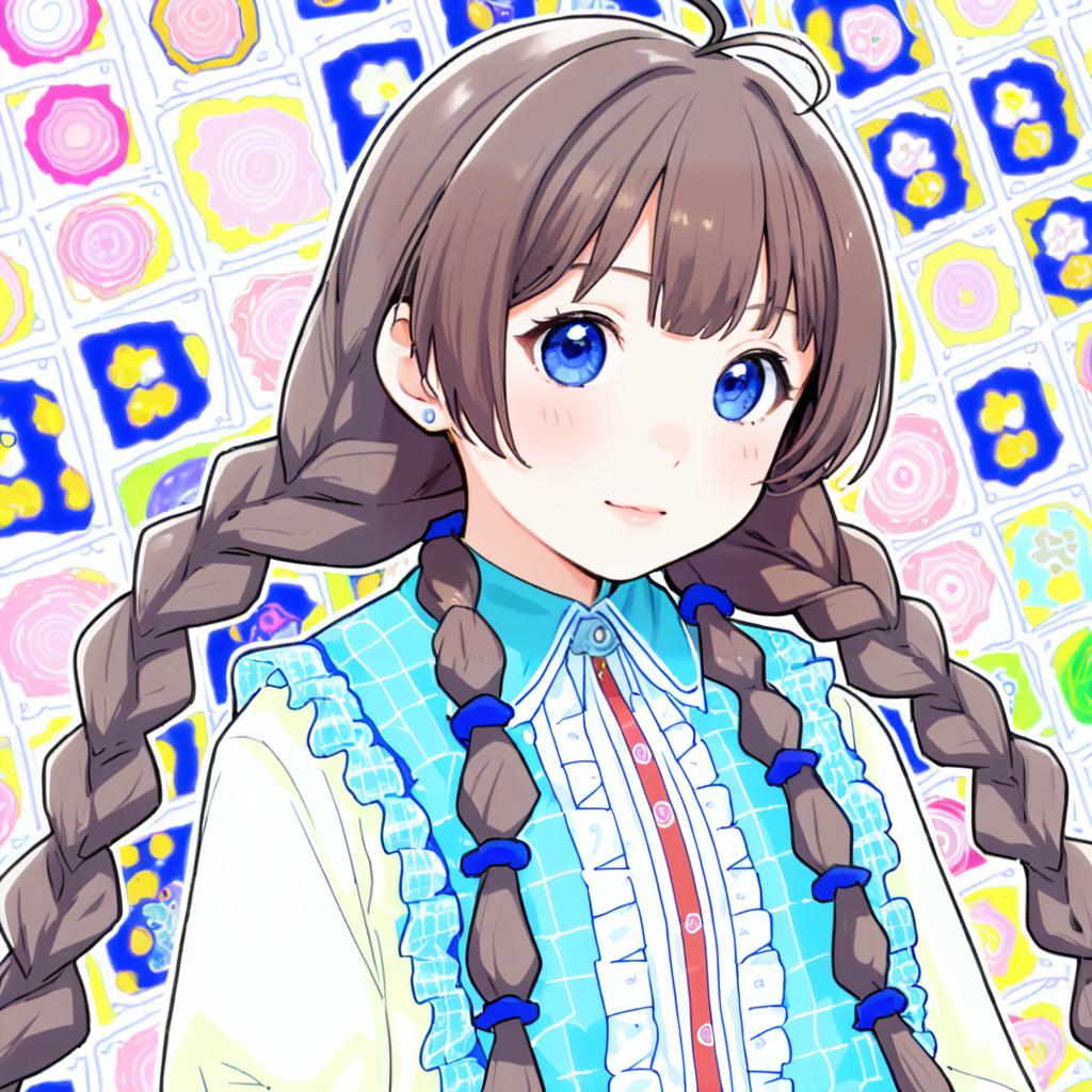 Arika yumemiya, my-otome, 1girl, blue eyes, brown hair, long hair, ahoge, twin braids, by artist torigoe takumi, anime