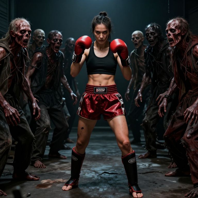 Photorealistic Female Muay Thai Fighter vs Zombies