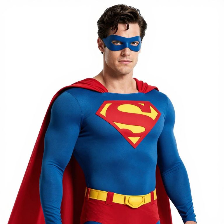 Male Superhero with Blue and Red Cape