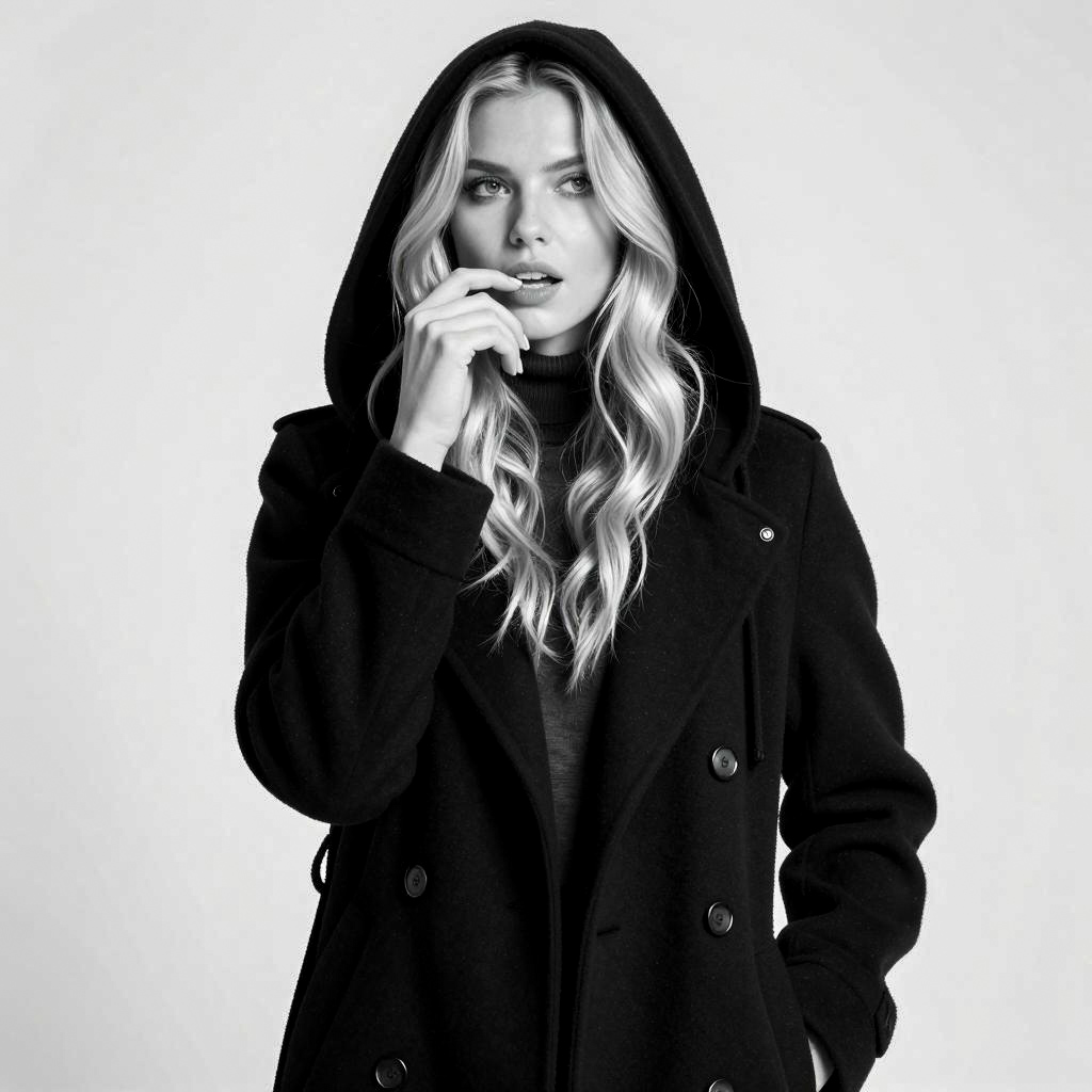 Elegant Squatting Pose in Black and White