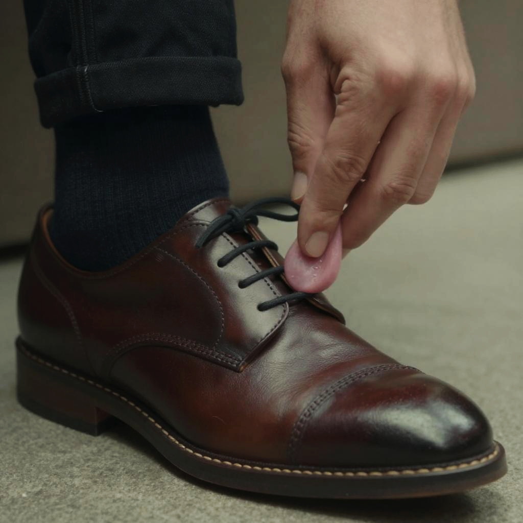 Shoe licking scene with a surreal twist, hyper-detailed close-up of a person gently licking a stylish leather shoe, soft lighting, realistic textures, cinematic mood
