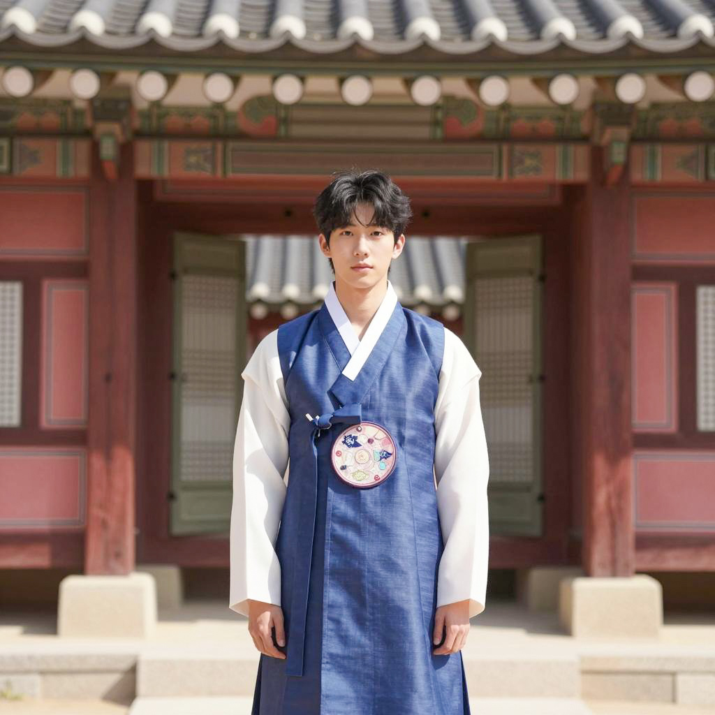 Young Asian Man in Traditional Korean Hanbok