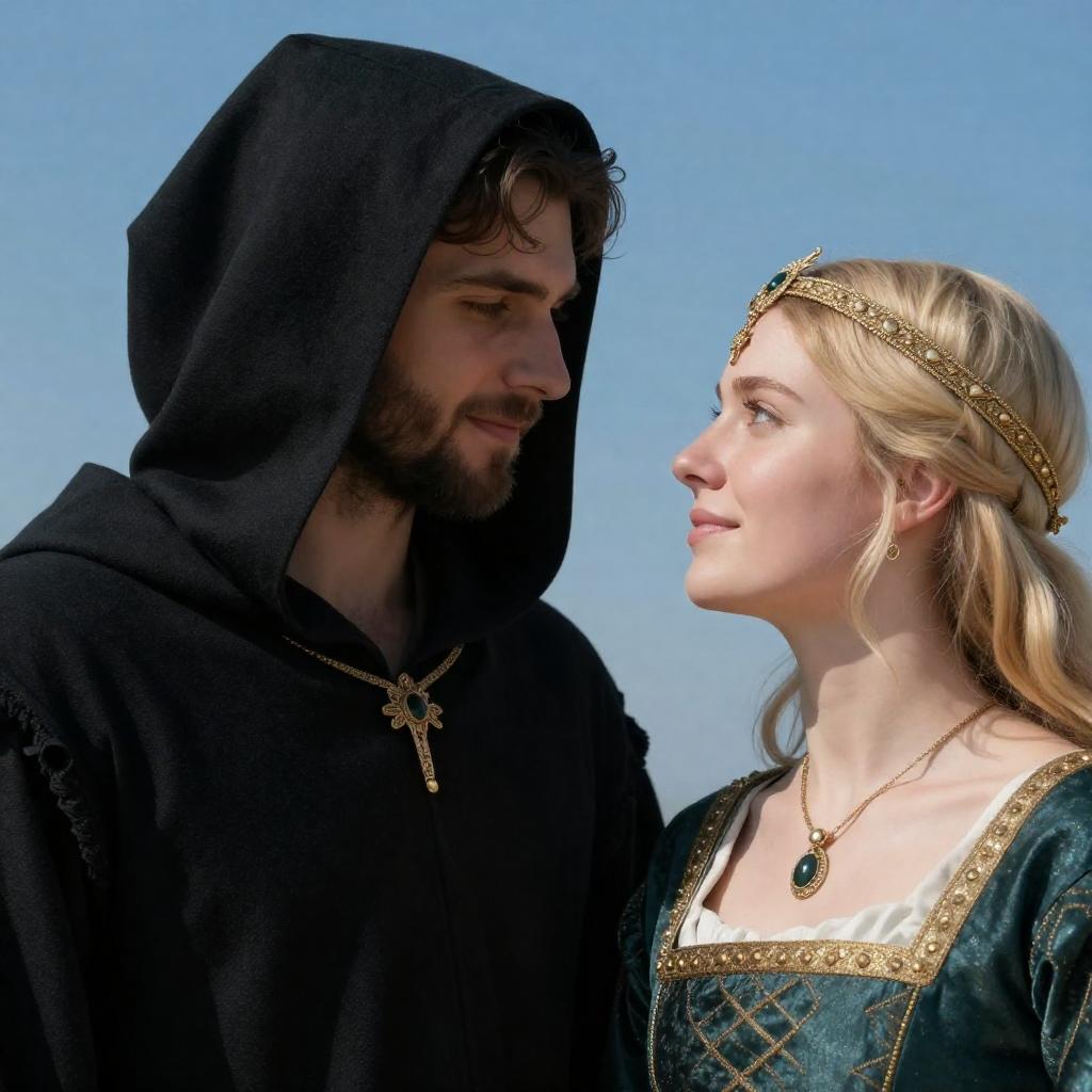 Medieval Romantic Embrace in Courtyard