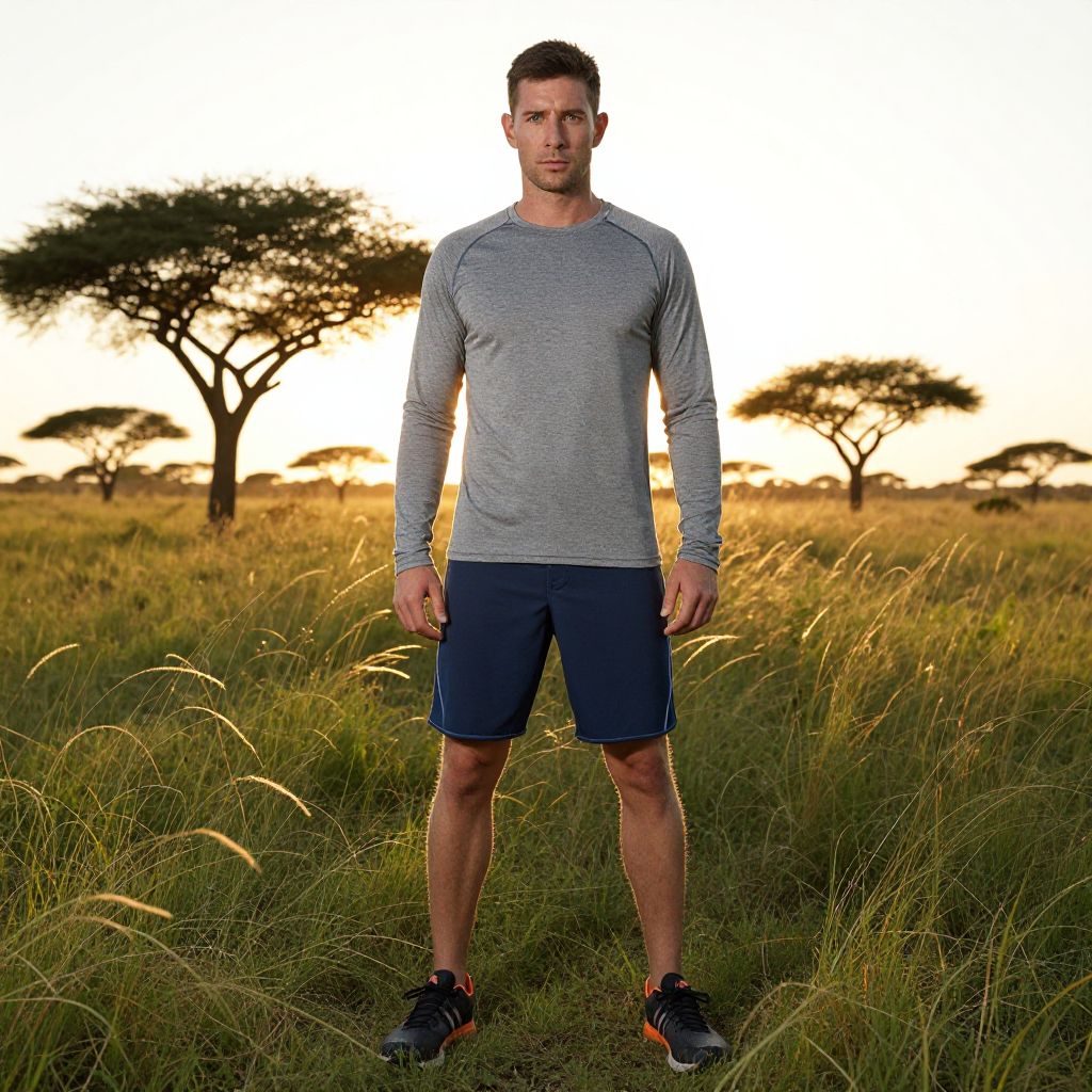 Man in Workout Gear at Savanna Sunset