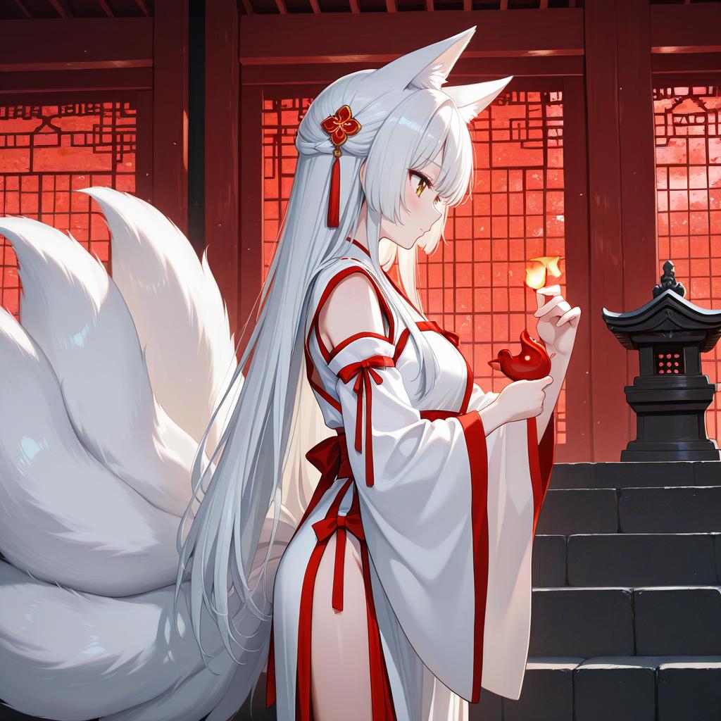 Anime Girl with Fox at Japanese Torii Gate