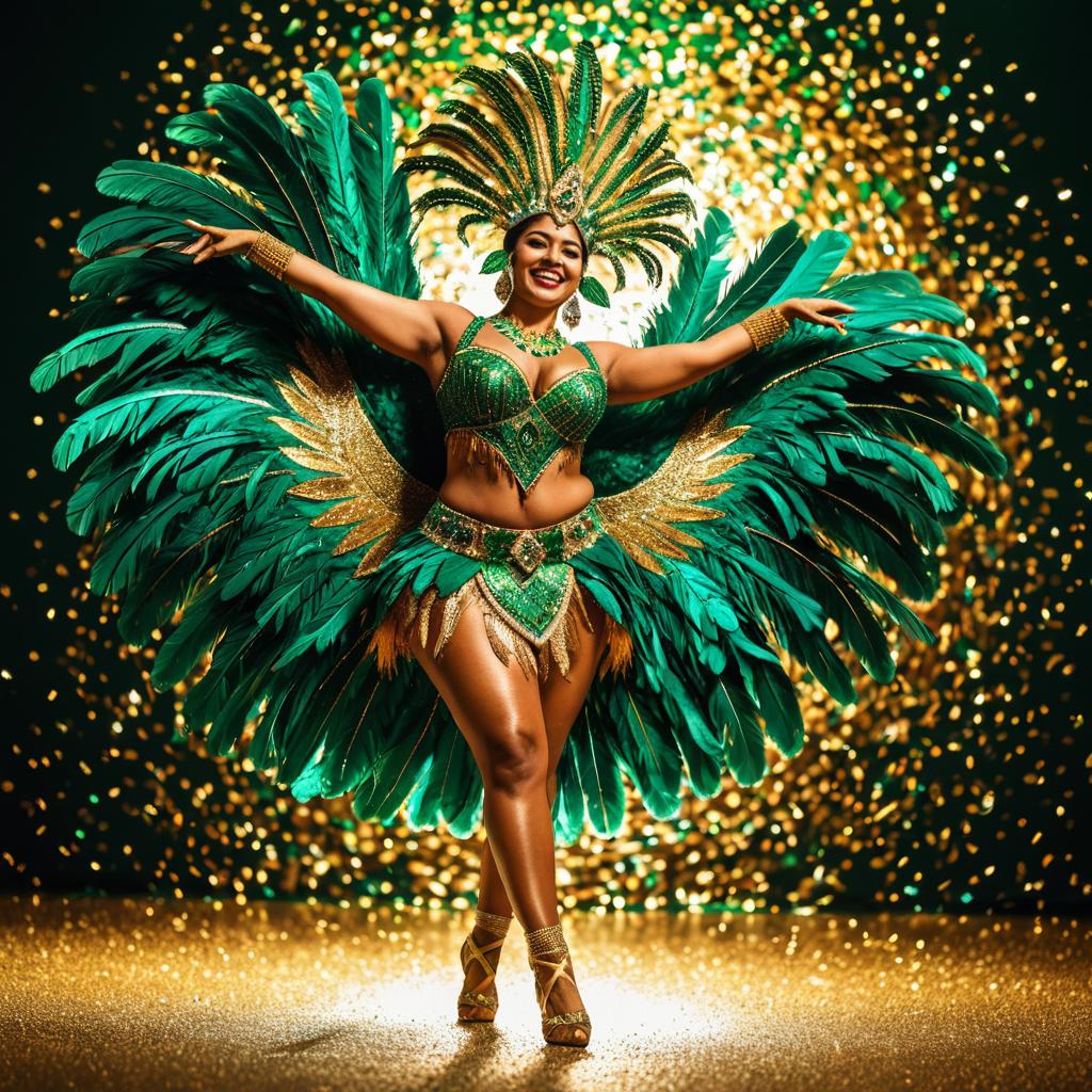 Artistic photography of a enigmatic masquerade performer, in intricate golden mask with deep red velvet robe, performing for the Rio Carnival. Photorealistic, shot in UHD, colorful mosaics, joyful and optimistic, slender figure, full body, bold use of line, Hyperrealistic digital painting, hyperrealistic, ultra-detailed, embroidery.