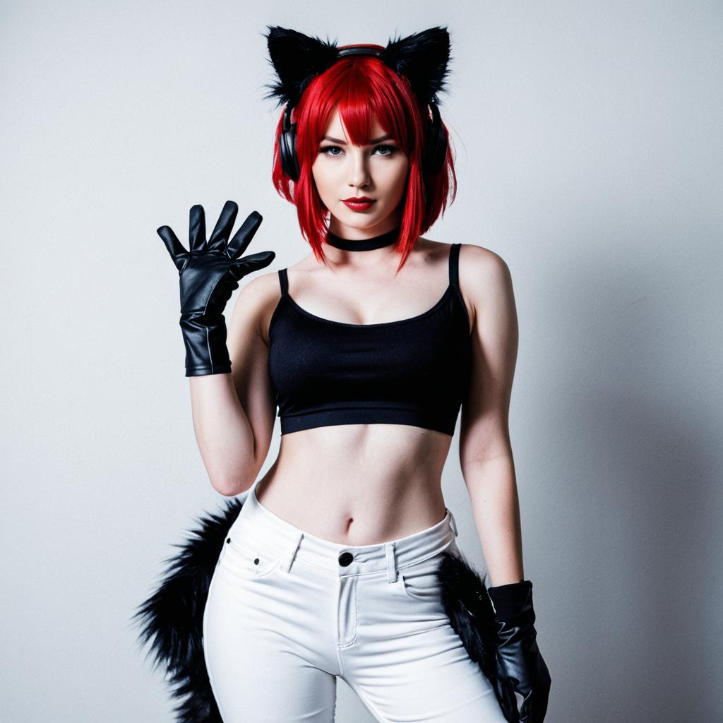 Rainbow mika cosplay ,1girl, solo, pink hair, shorts, animal ears, multicolored hair, navel, multicolored clothes, midriff, short shorts, thigh strap, long hair, crop top, looking at viewer, blue hair, belt, hood, standing, jacket, lips