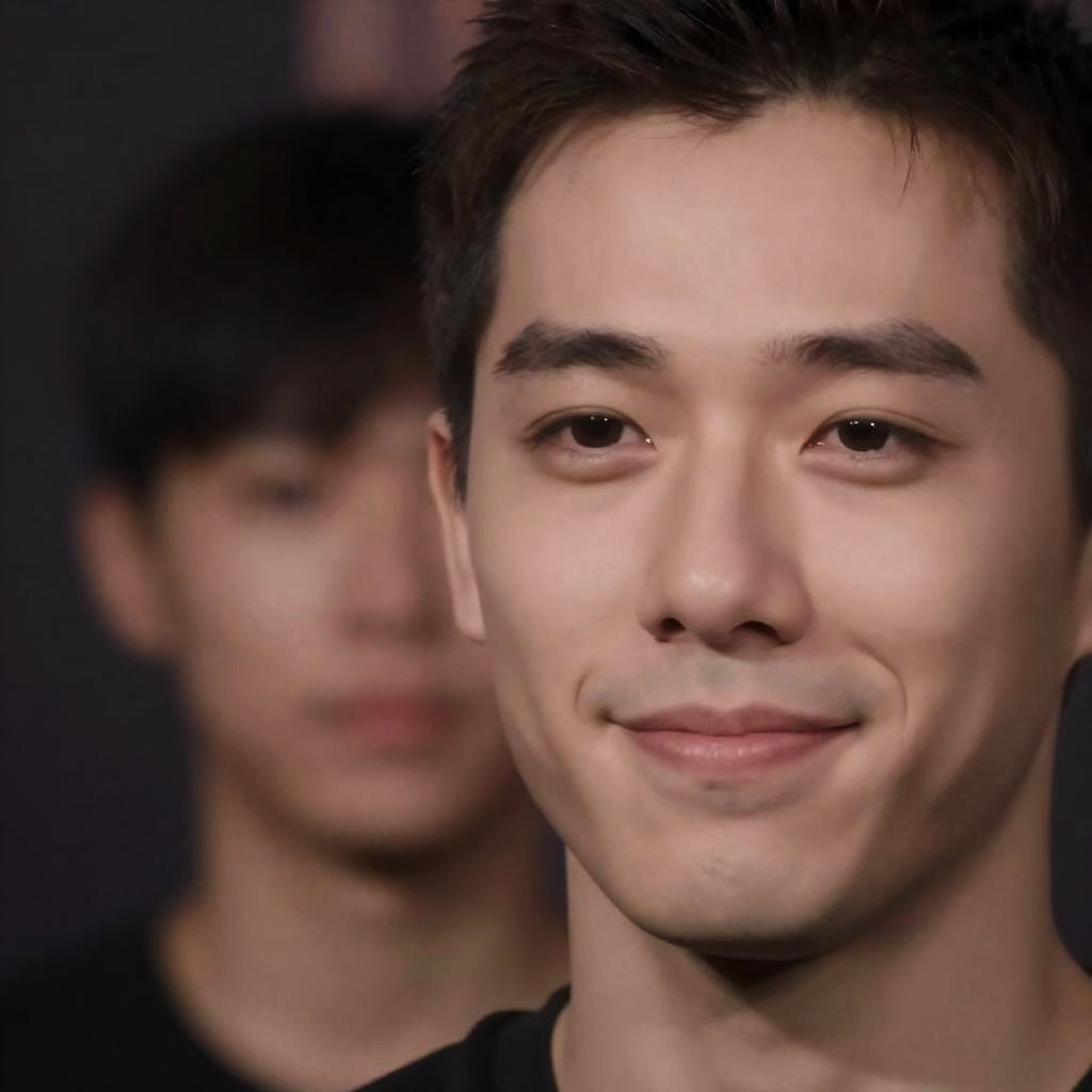 Close-up photograph of a shirtless man with wet, dark hair, electrodes attached to his temples, smiling slightly. Dimly lit background. Man's face shows slight wrinkles and a few beads of sweat. Metal frame behind his head.