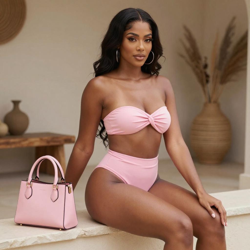 Confident Black Woman in Iridescent Bikini