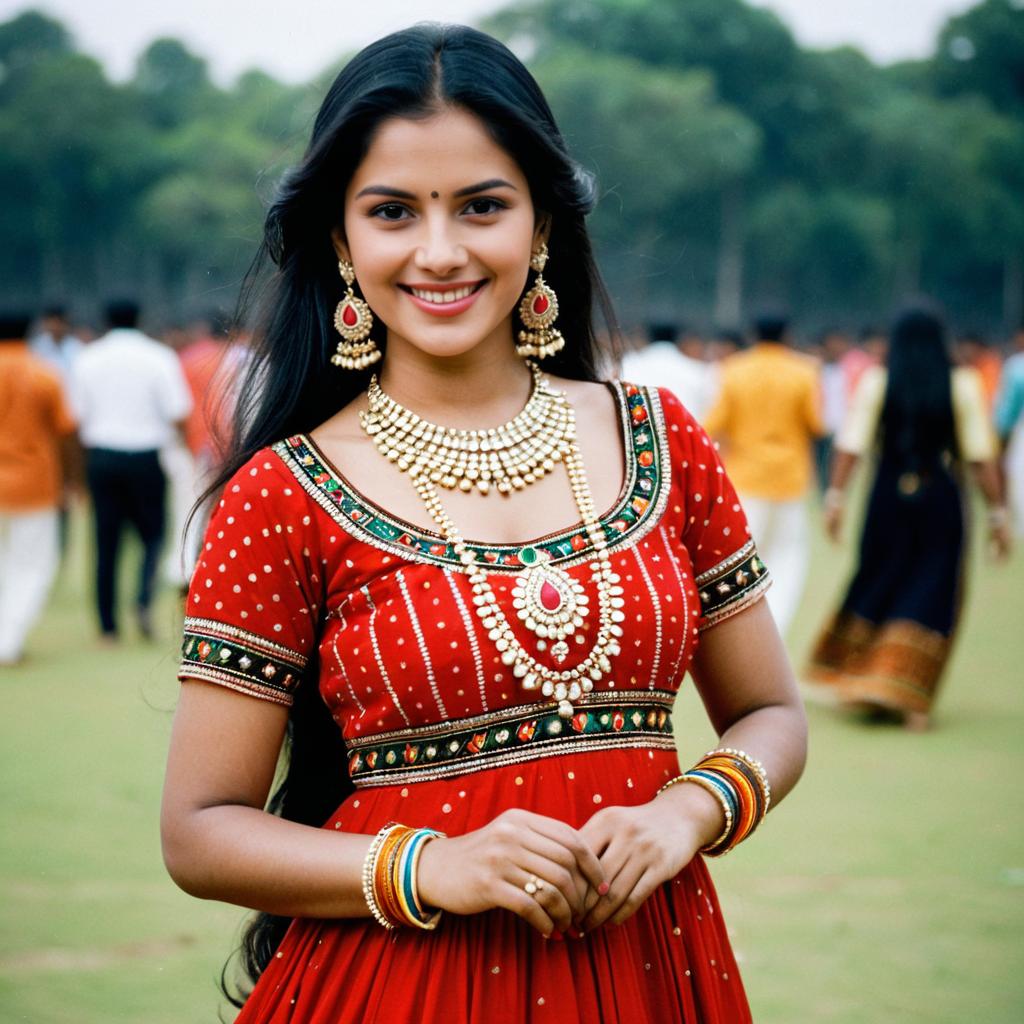 Indian Woman in Traditional Jewelry and Yellow Dress