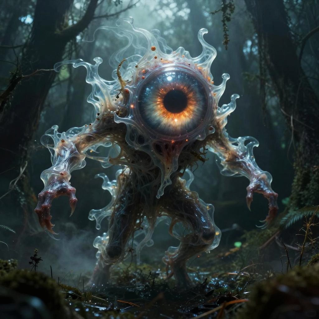 (a floating gaseous eye) in a horrific swamp, creature, horror, ectoplasm, ghost, translucent, (nightmare), chaos, sauron, masterpiece, best quality, (intricate details), (****), eldritch, glow, glowing eyes, misty, volumetric lighting, unique pose, dynamic pose, dutch angle, 35mm, anamorphic, lightroom, cinematography, film grain, HDR10, 8k hdr, Steve McCurry, ((cinematic)), RAW, color graded portra 400 film, remarkable color