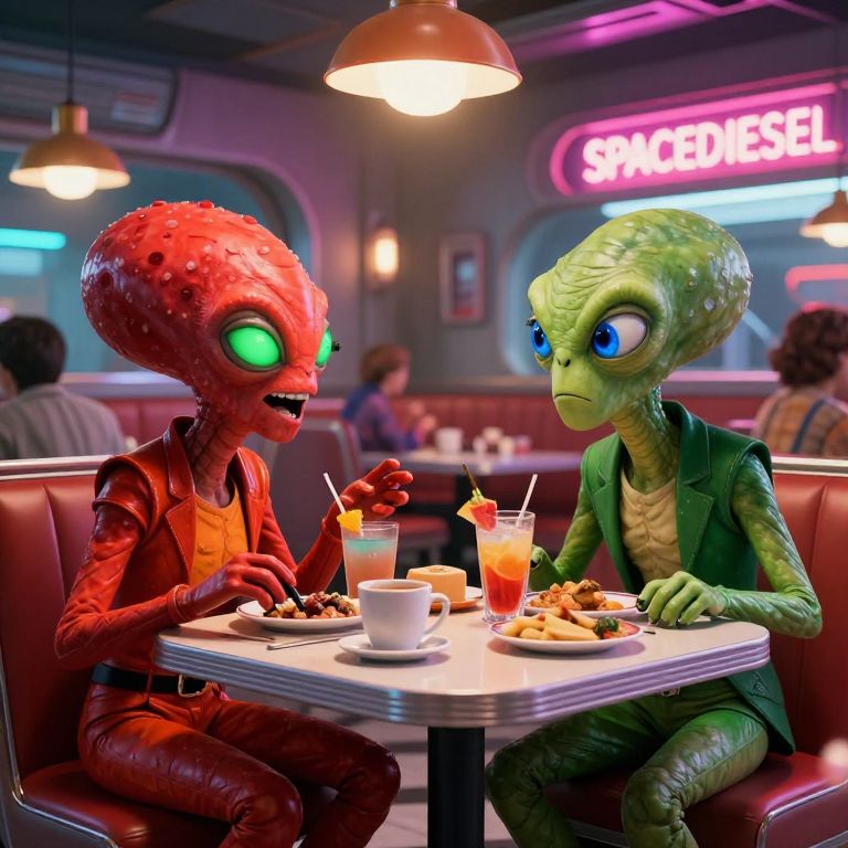 Retro-Futuristic Alien Diner Encounter