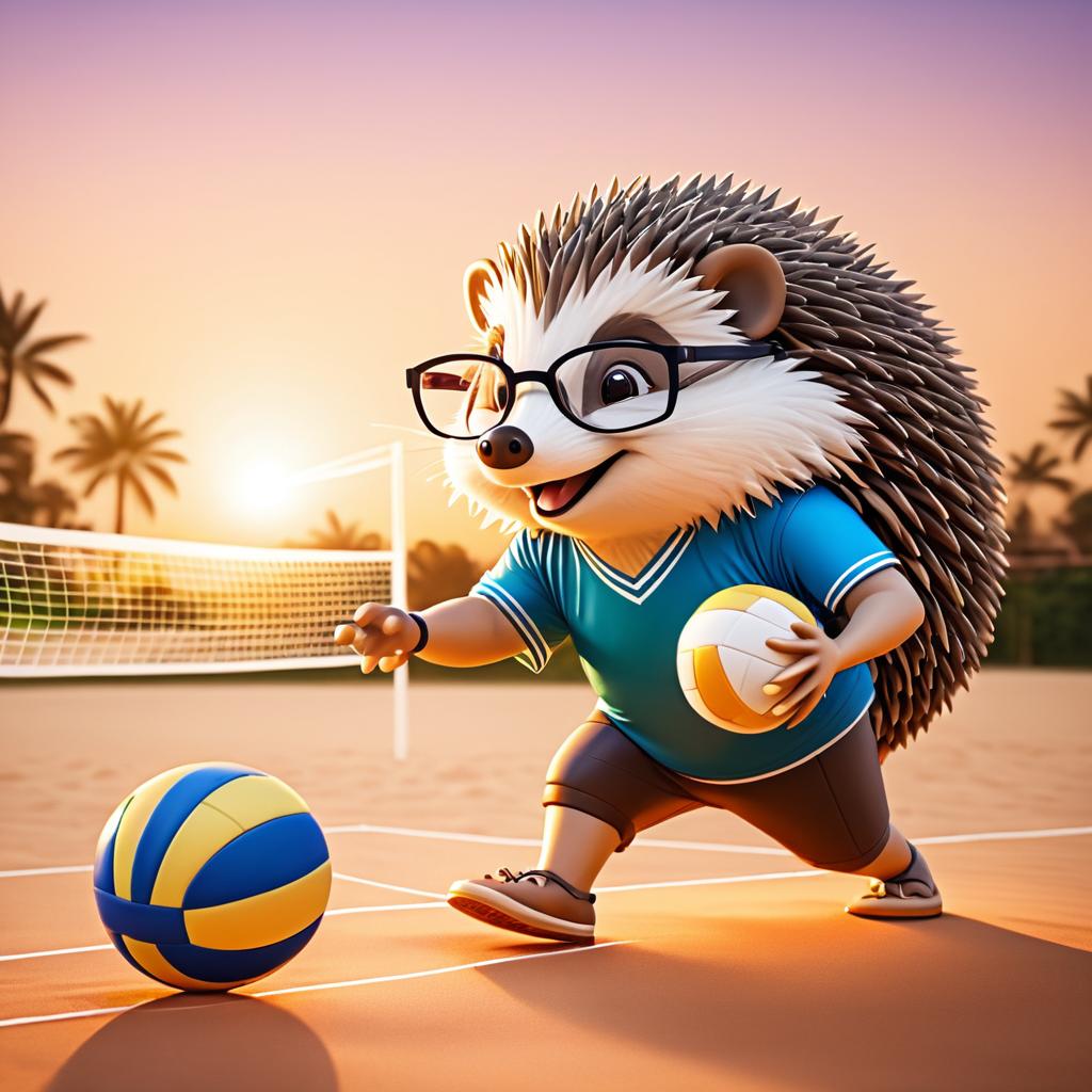 Hedgehog Playing Volleyball at Sunset