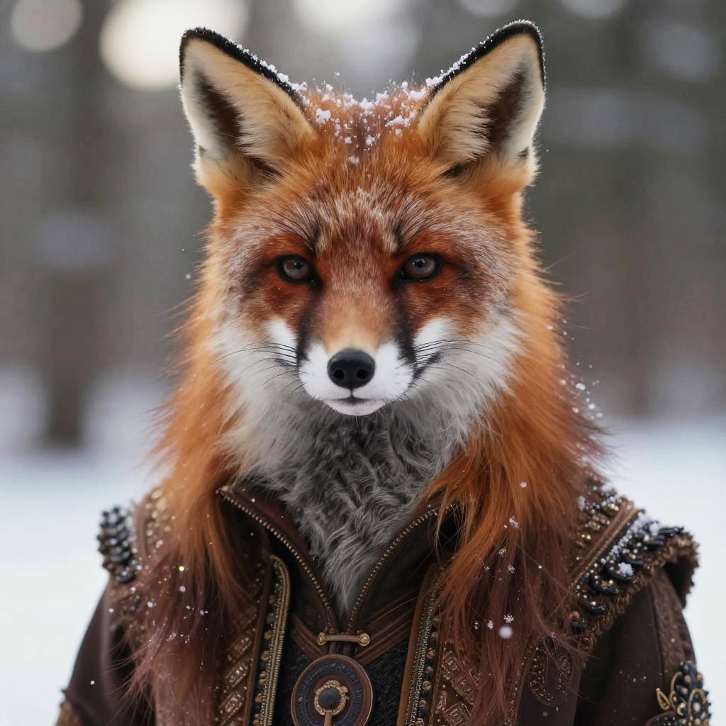Cinematic Foxie Woman in Winter Forest