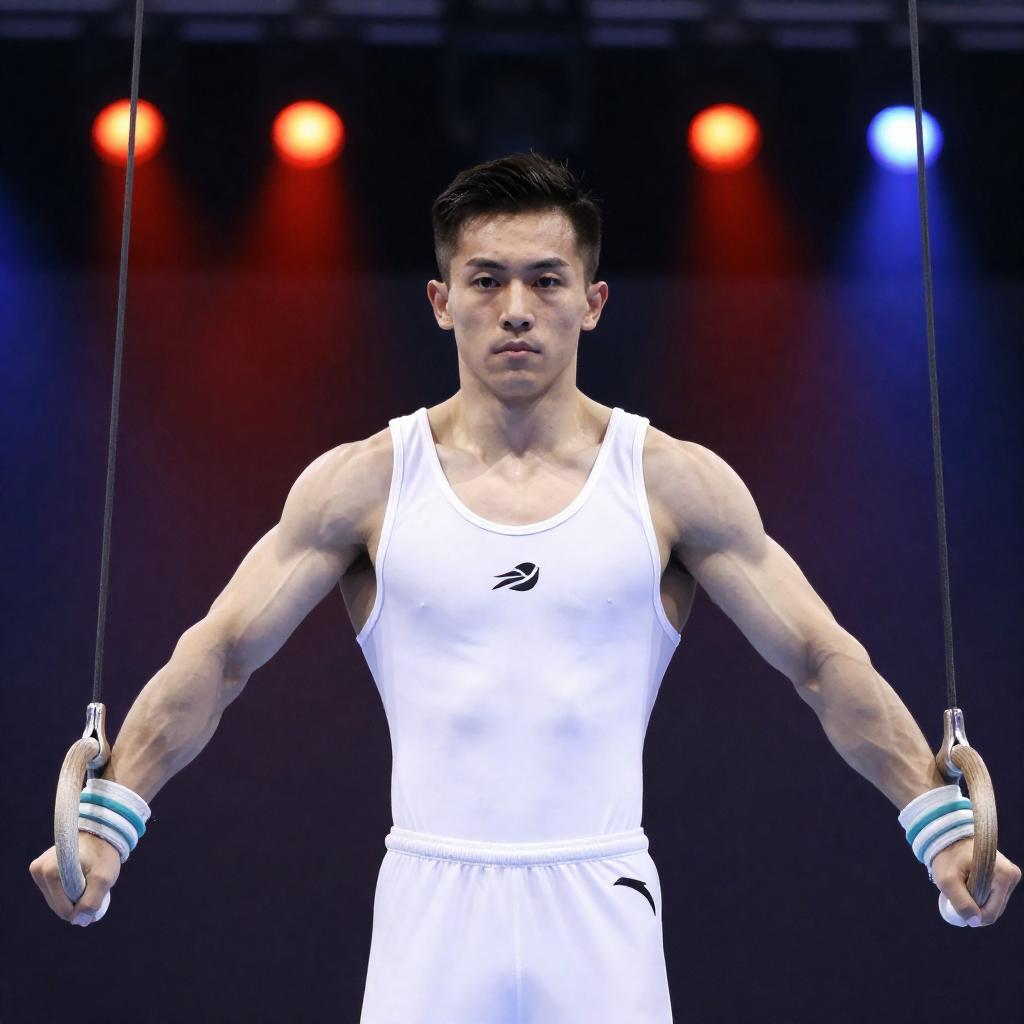 Dynamic Male Gymnast Under Stage Lights