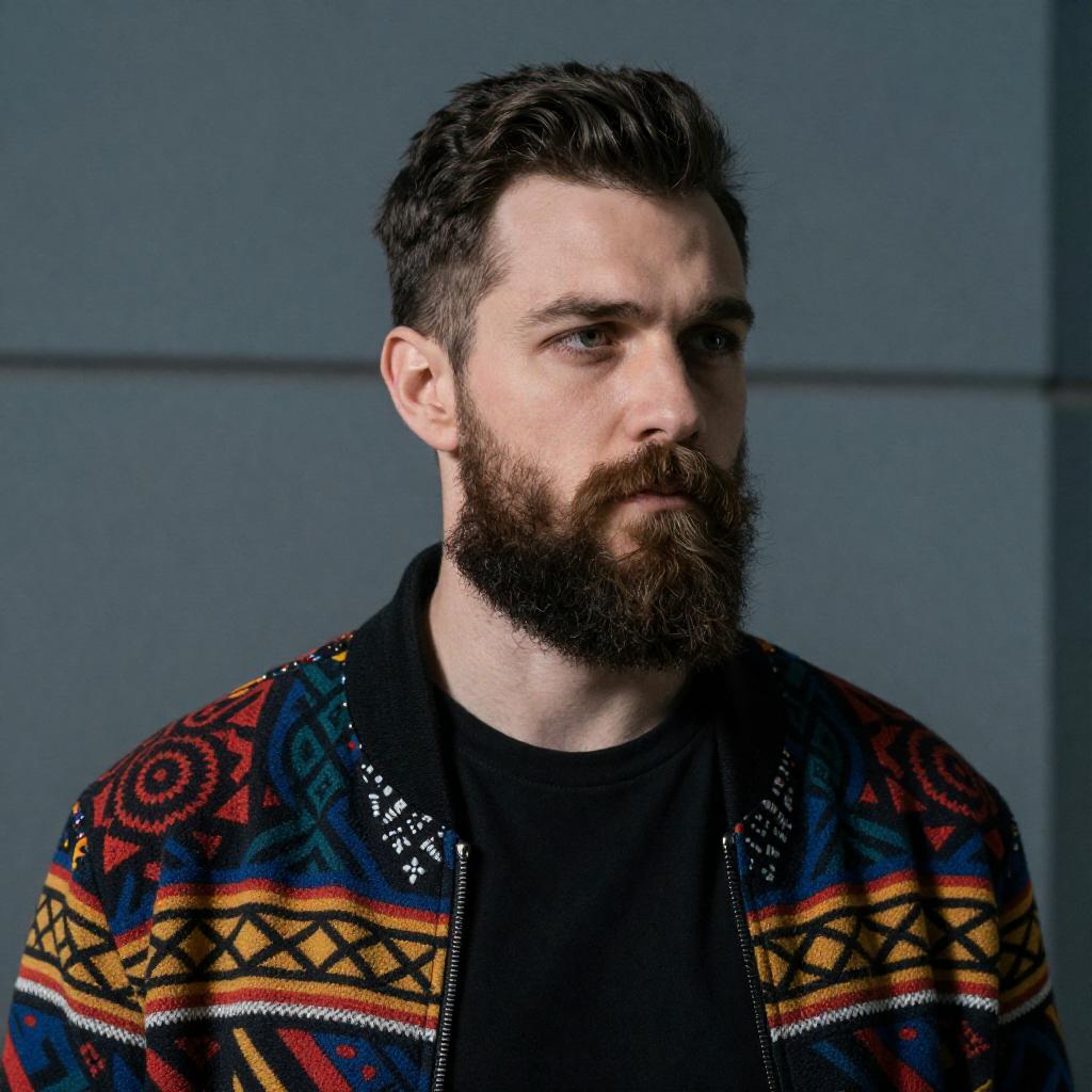 Portrait of Bearded Man in Plaid Shirt