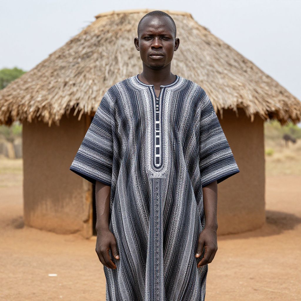 Traditional Zulu Costume, man in traditional clothing standing in front of a hut