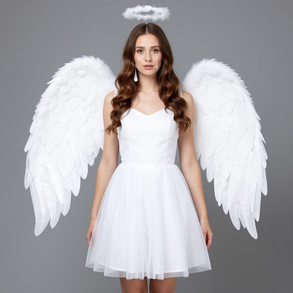 "Weeping Angel Costume, woman dressed as an angel with wings"