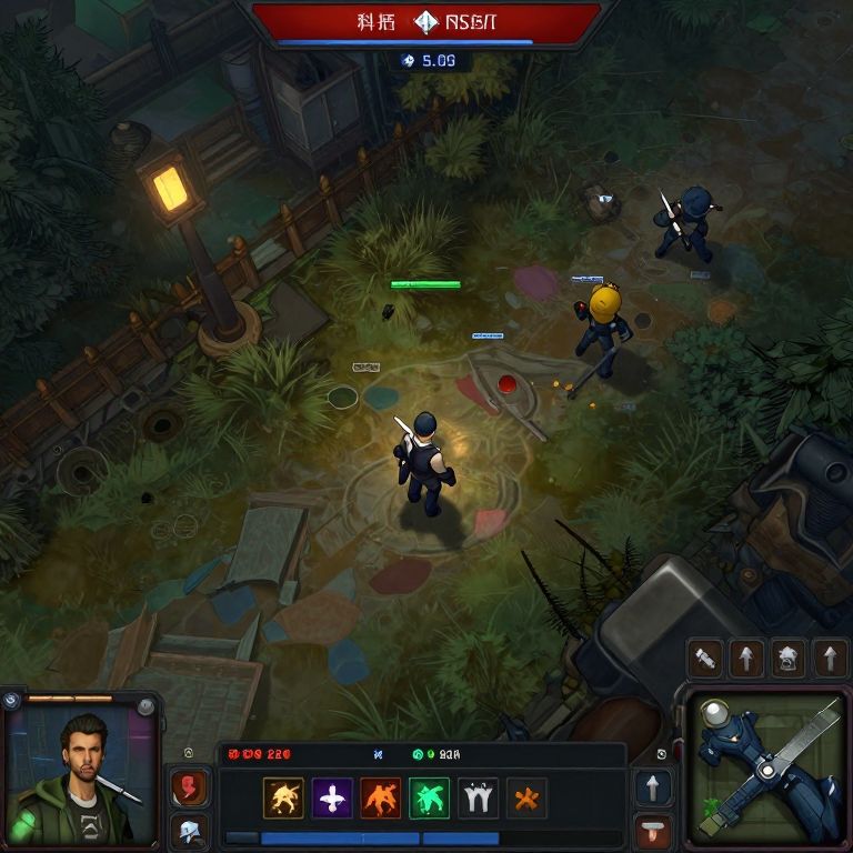 Screenshot from The Division video game showing top-down view of characters in tactical gear navigating a dimly lit outdoor environment with foliage, paved ground, and street lamp. Game HUD elements including player health, skill icons, and inventory are visible.