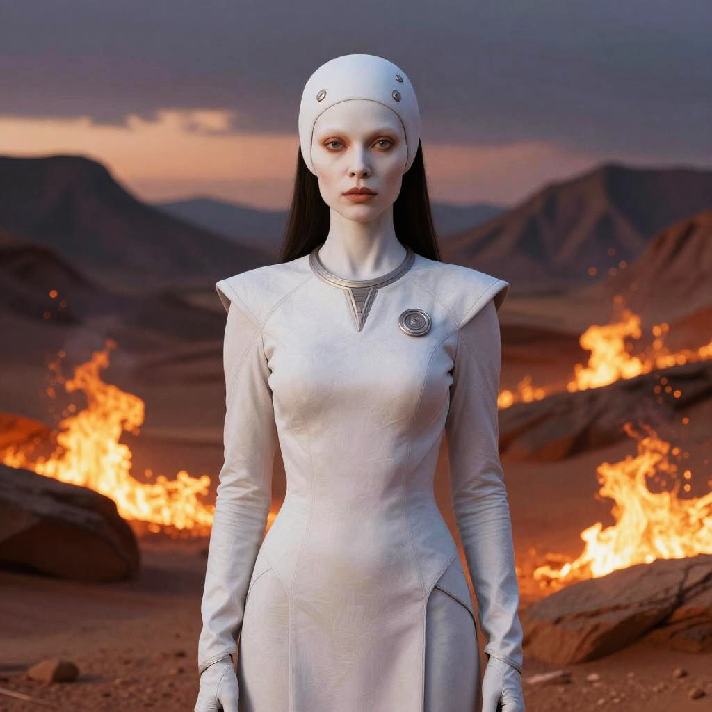 Cinematic Vulcan Woman in Desert Twilight
