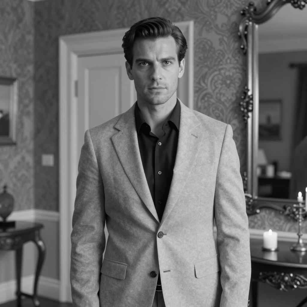 Mysterious Man with Candle in Shadows