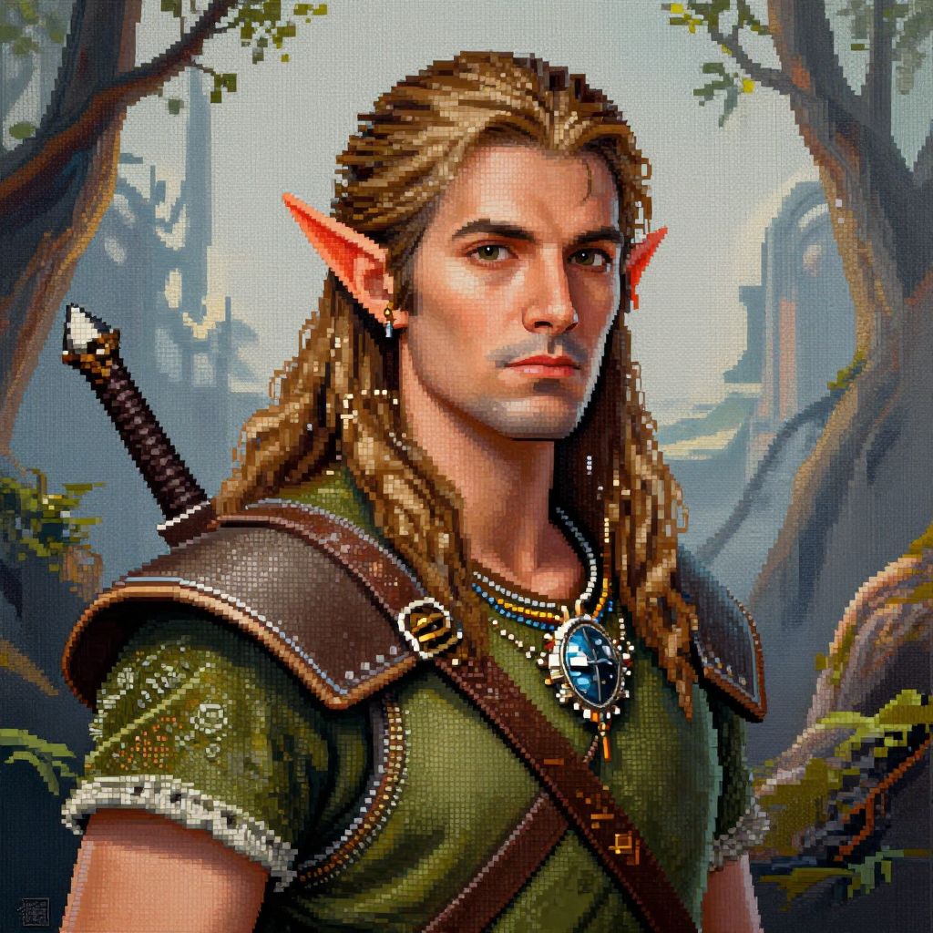 Beading painting style portrait by men DND Druid adventurer, half body, highly detailed illustrations, portrait,