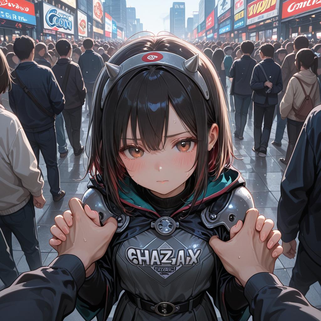 Masterpiece, best quality, pov, crowd, cosplay, comic con, 1girl, torn