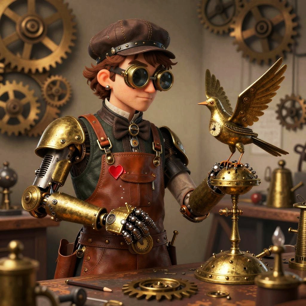 Steampunk Inventor with Clockwork Bird