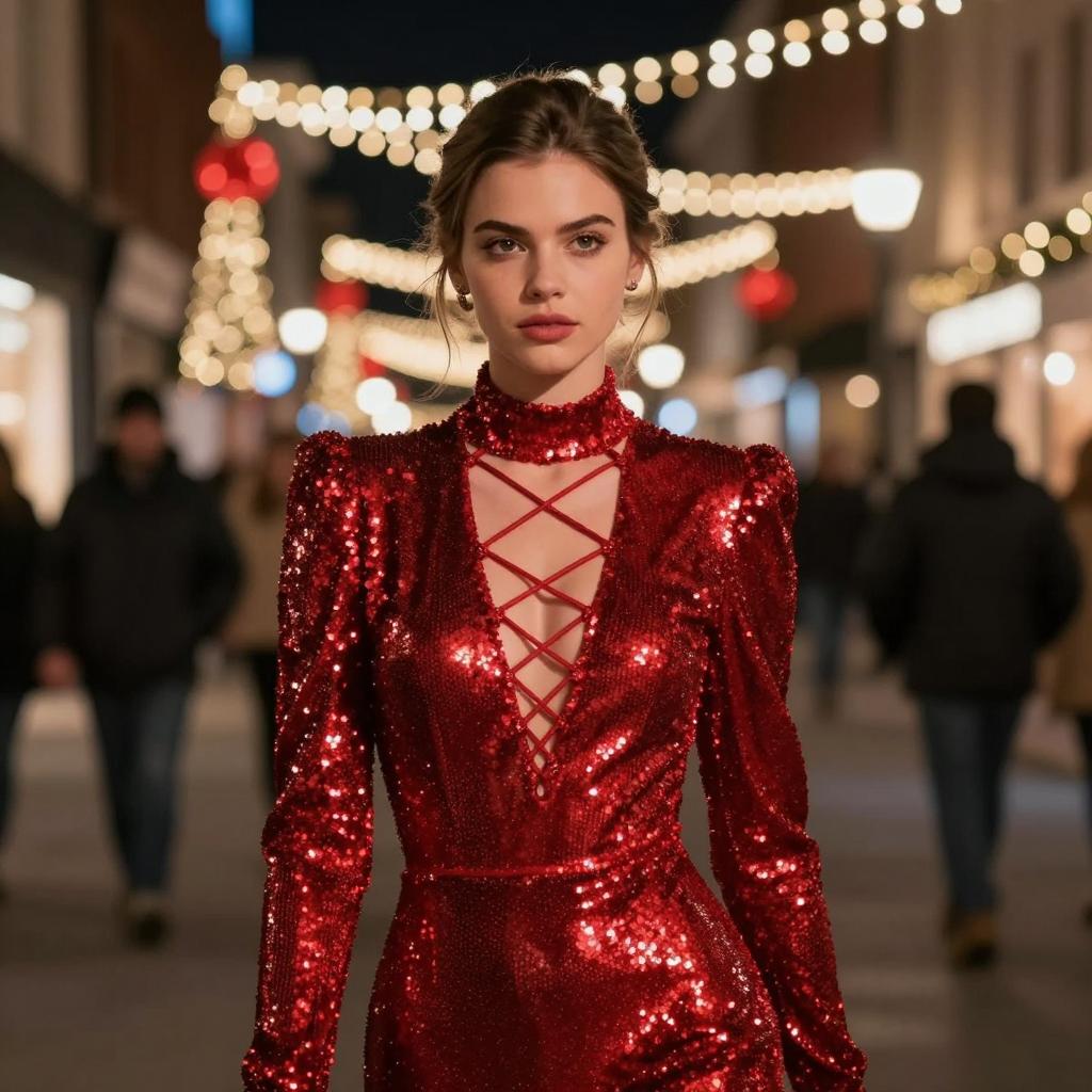 Woman Wearing Sequin Nutcracker Outfit in Urban Street