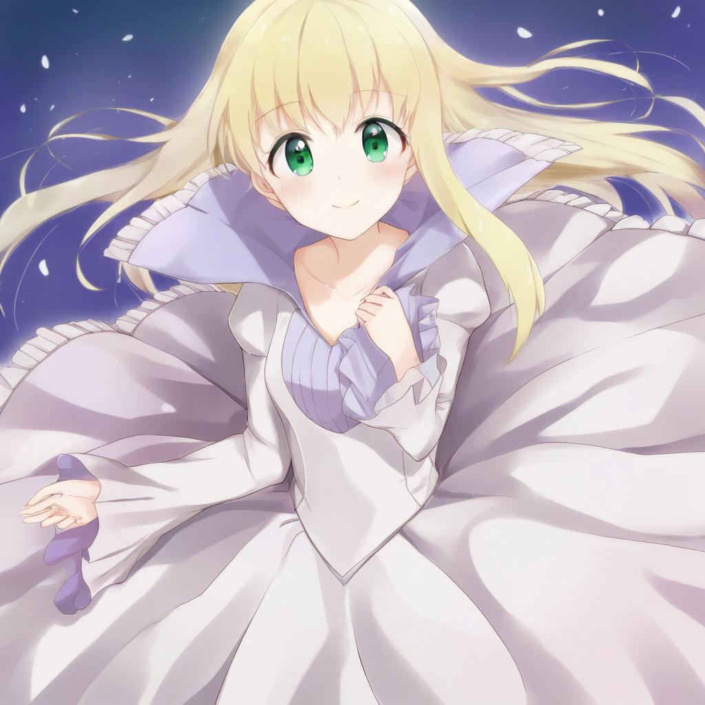 Asseylum vers allusia, aldnoah.zero, 1girl, green eyes, blonde hair, long hair, by artist racchi., leet
