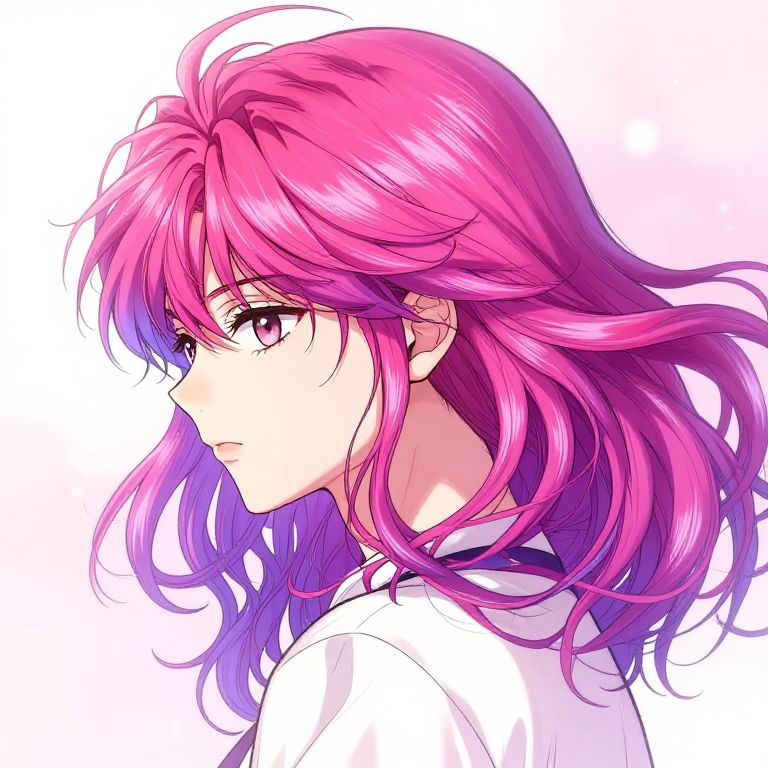 Manhwa hair styled in vibrant colors with dynamic flowing strands, glossy shine, and exaggerated volume, set against a soft pastel background, capturing the essence of Korean comic artistry and dramatic flair in character design.