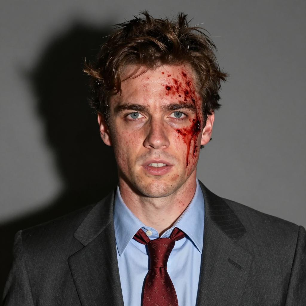 Dramatic Close-up of Wounded Man