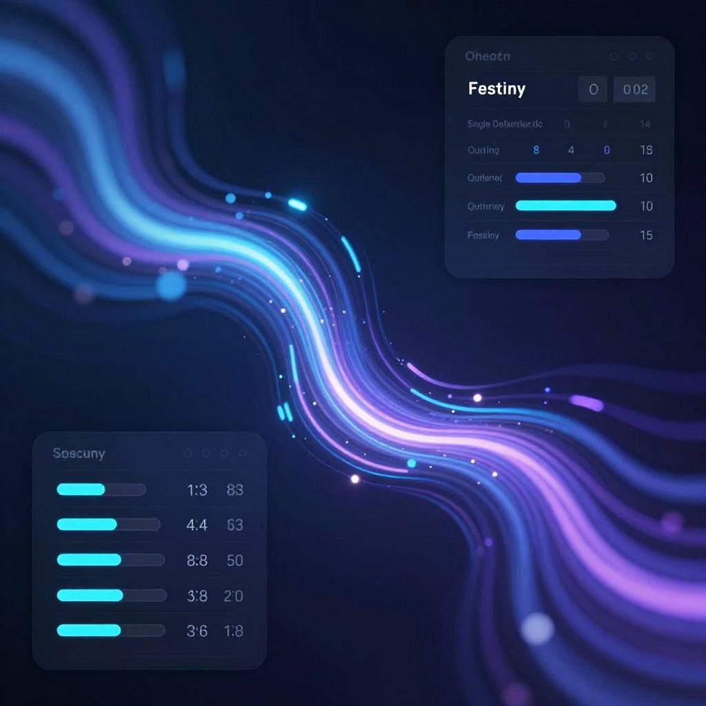 A conceptual artistic rendition of stable diffusion settings depicted as flowing streams of light and color adjusting parameters in real-time, blending abstract digital art with high-tech user interface motifs, deep blues and purples, ethereal atmosphere.