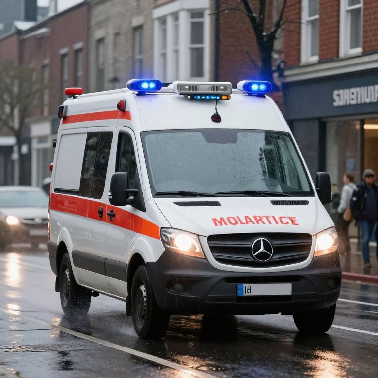 Ambulance Racing Through Rainy City
