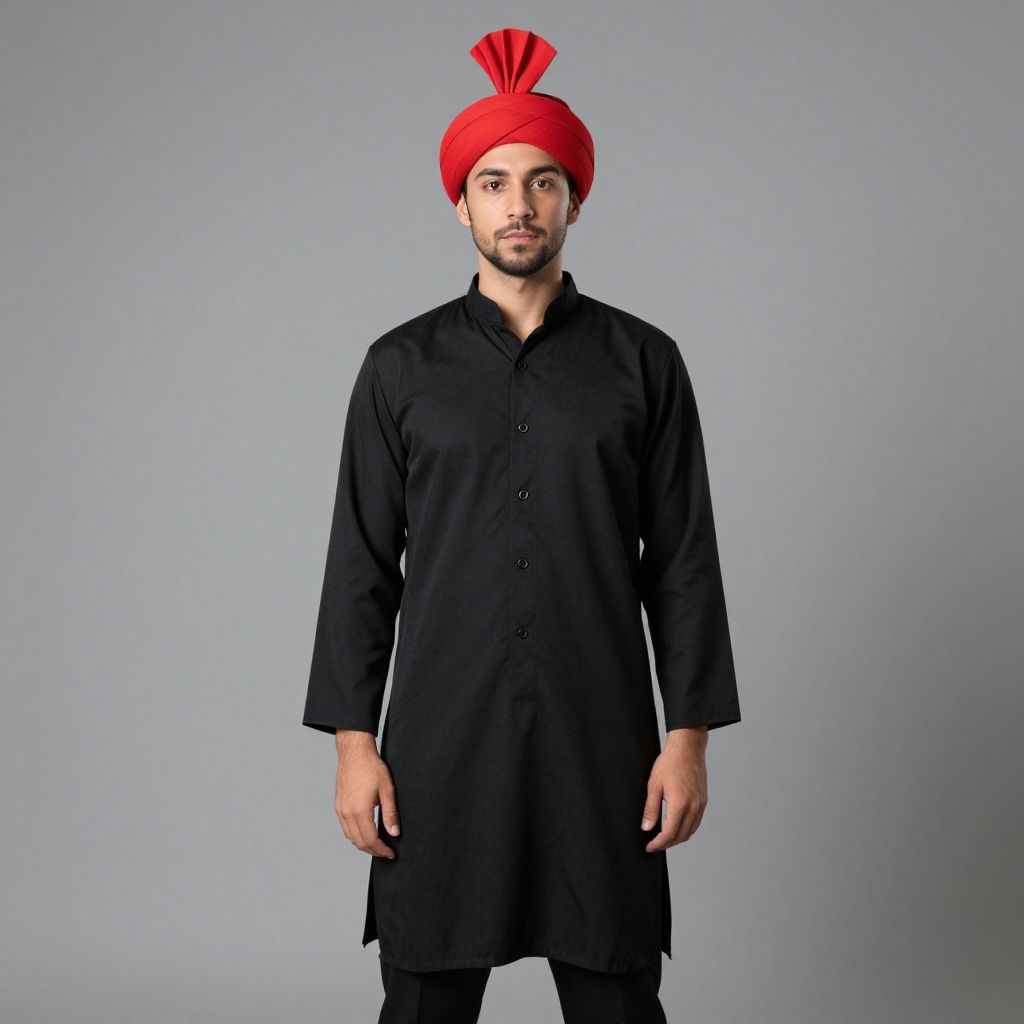 Simple Homemade Costume Guy, man in a red turban and black outfit