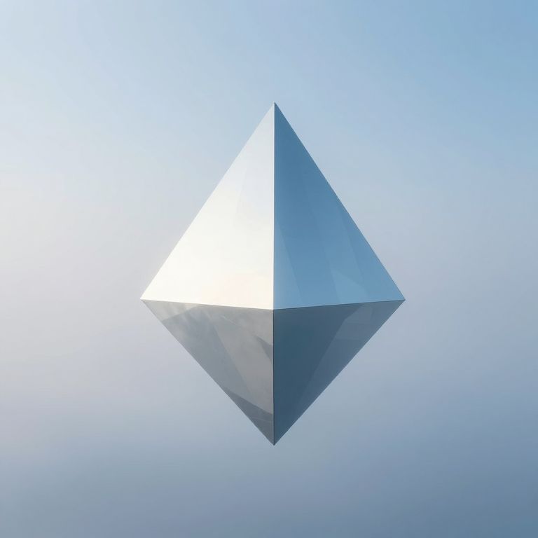 Suspended between heaven and earth, an inverted pyramid of mirrored facets reflects an infinite expanse of serenity, inviting contemplation of the boundless and the ephemeral.