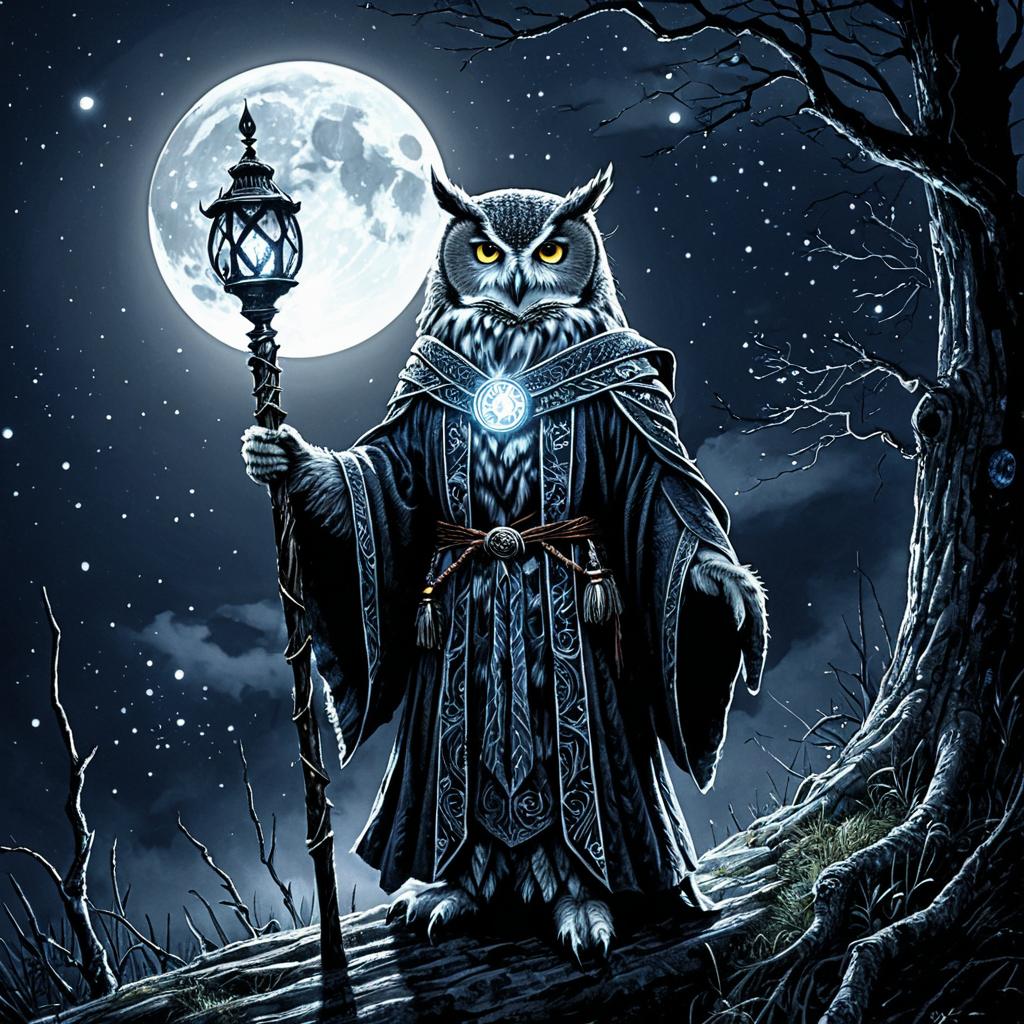Mystical Owl Mage in Enchanted Realism