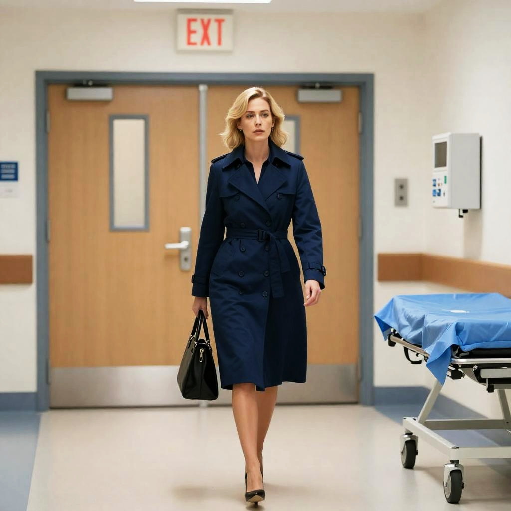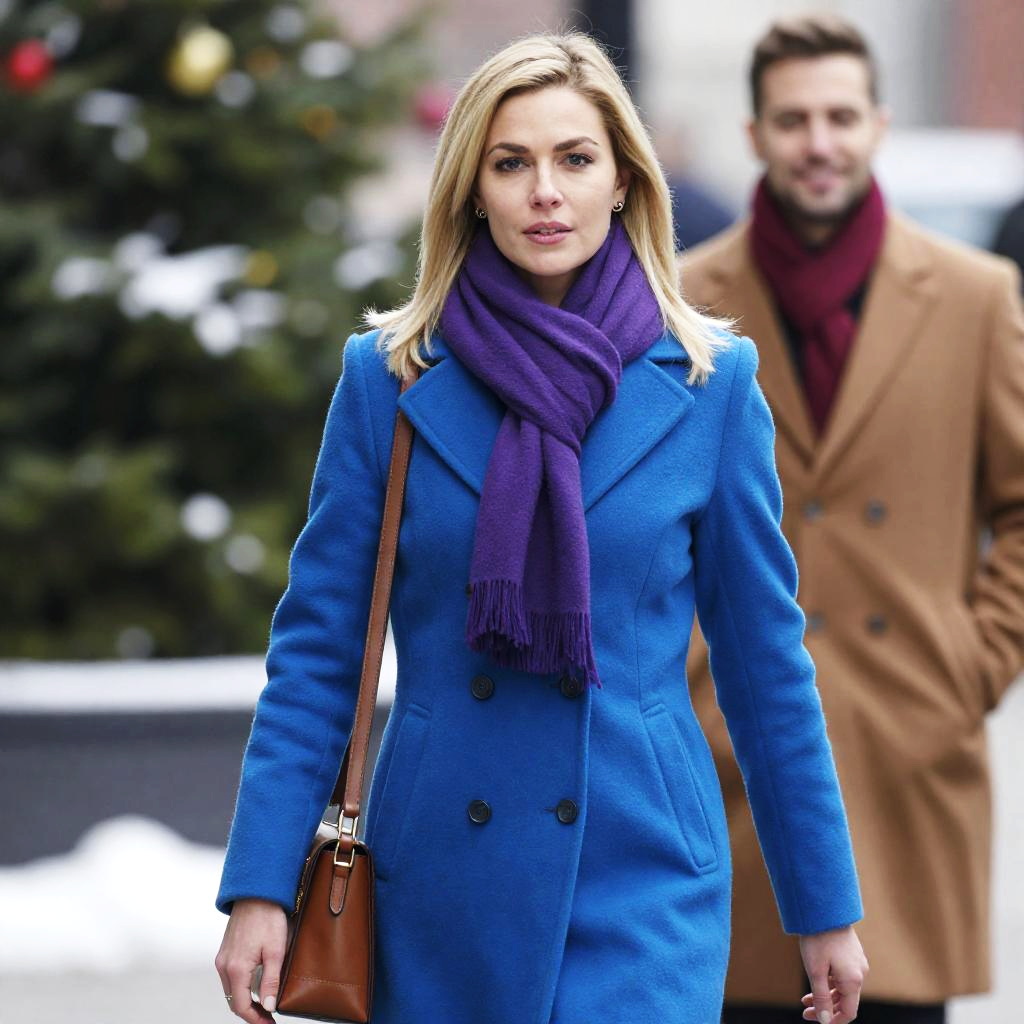 Confident Woman in Blue Coat on Asphalt