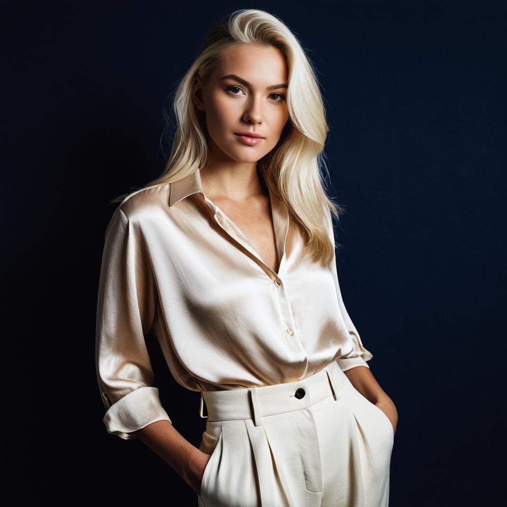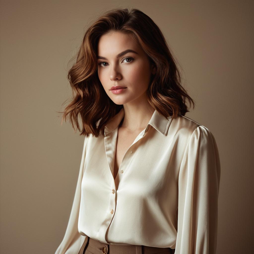 Emerald Eyed Woman in Silk Blouse