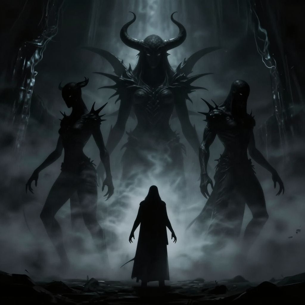 (magnum opus:1.2), (masterpiece:1.2), (top quality:1.2), (best quality:1.2), (extremely high detail:1.2), (official art:1.2), (aesthetic:1.2), (hyper realistic:1.2), (photo realistic:1.2), (dynamic camera angle:1.2), (dynamic action stance:1.2), (foreshortening:1.2), (symmetrical:1.2), (steaming body:1.2), (Luis Royo style:1.2), (Aza'gorod The Nightbringer:1.2), (star eater:1.0), (ever-hungering god of death:1.2), (veiled monstrosity:1.2), (shrouded in smoke:1.4), (minimal cel shaded art style:1.2), (solo:1.2), (necromorph:1.0)