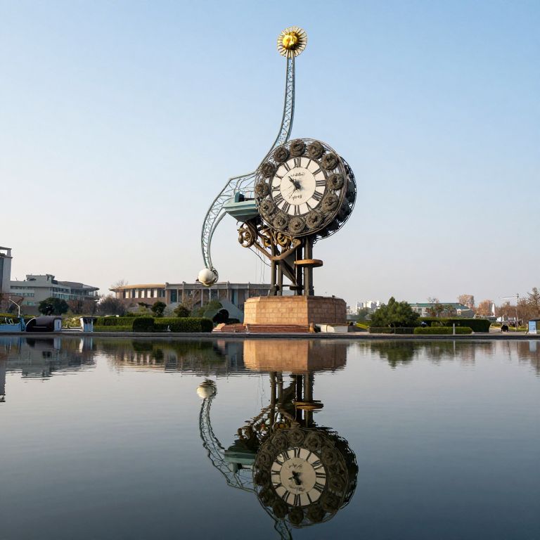An ancient clocktower cast in negative space stands in the middle of a mirror lake, its timelessness reflected infinitely into non-time.