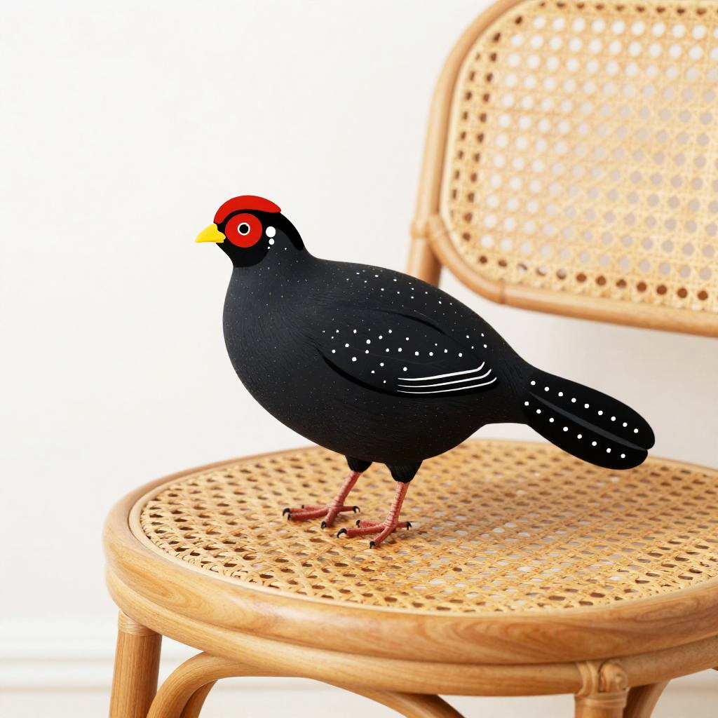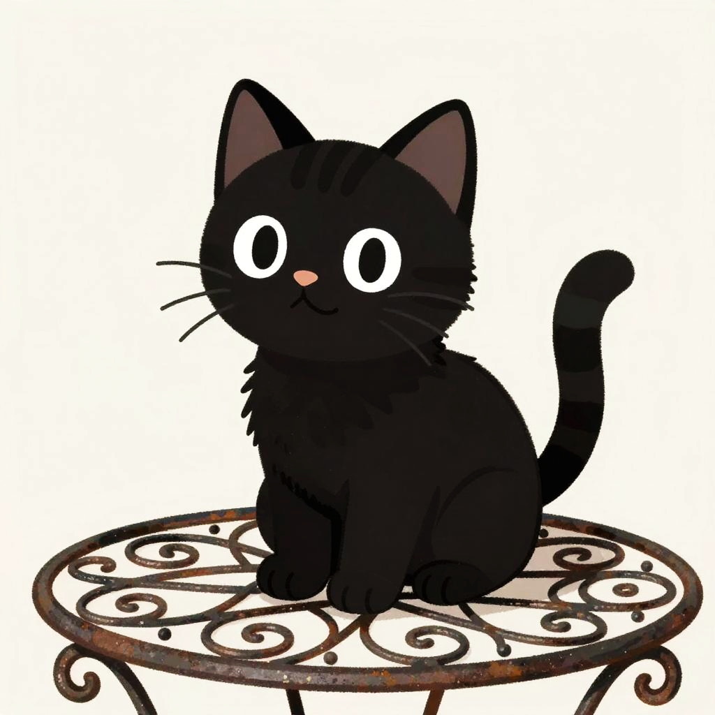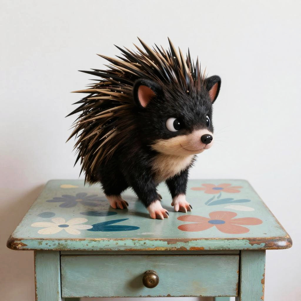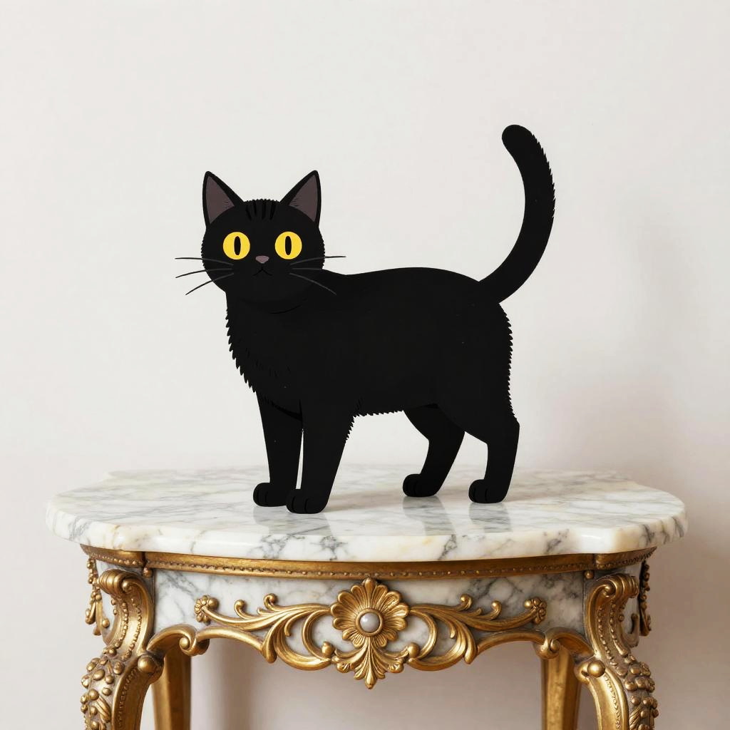 The black beagle on a carved oak table with heritage floral reliefs, in the style of Ferris Plock, charming character illustrations