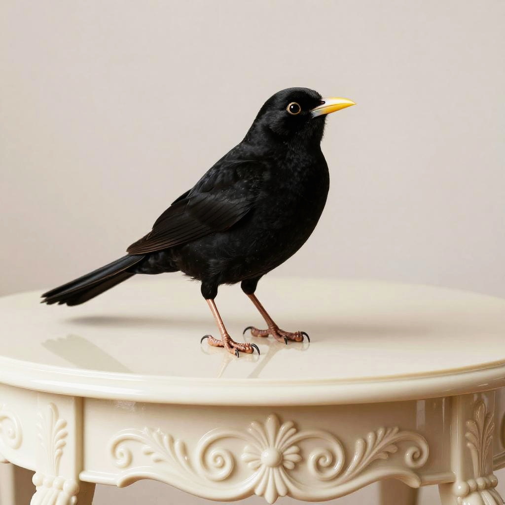 Black Beagle on Carved Oak Table