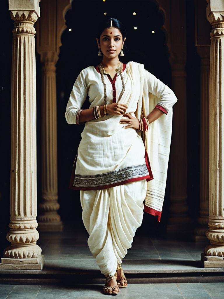 Woman in Dhoti Suit Salwar, cinematic realism, regal cultural editorial photo