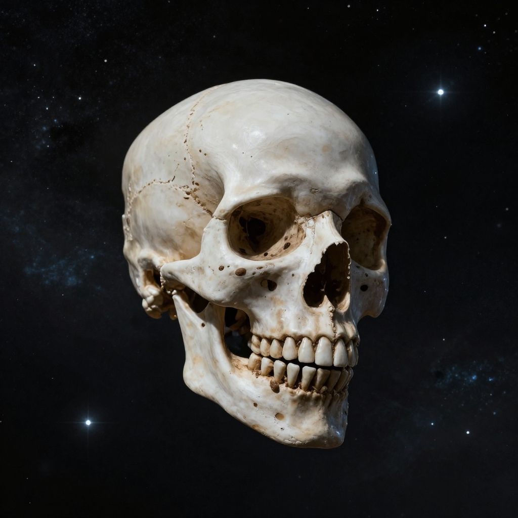 Weightless Thelemic Skull in Space