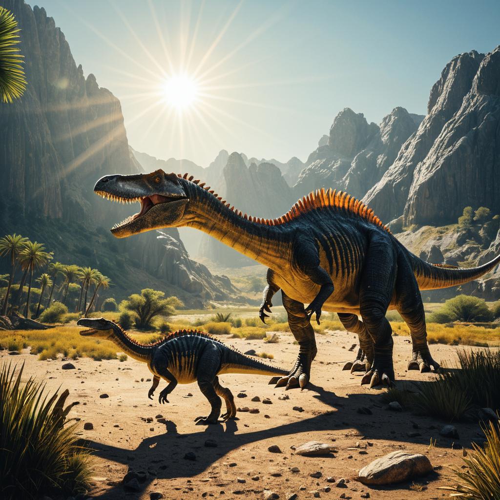 Spinosaurus with Juveniles in Prehistoric Landscape